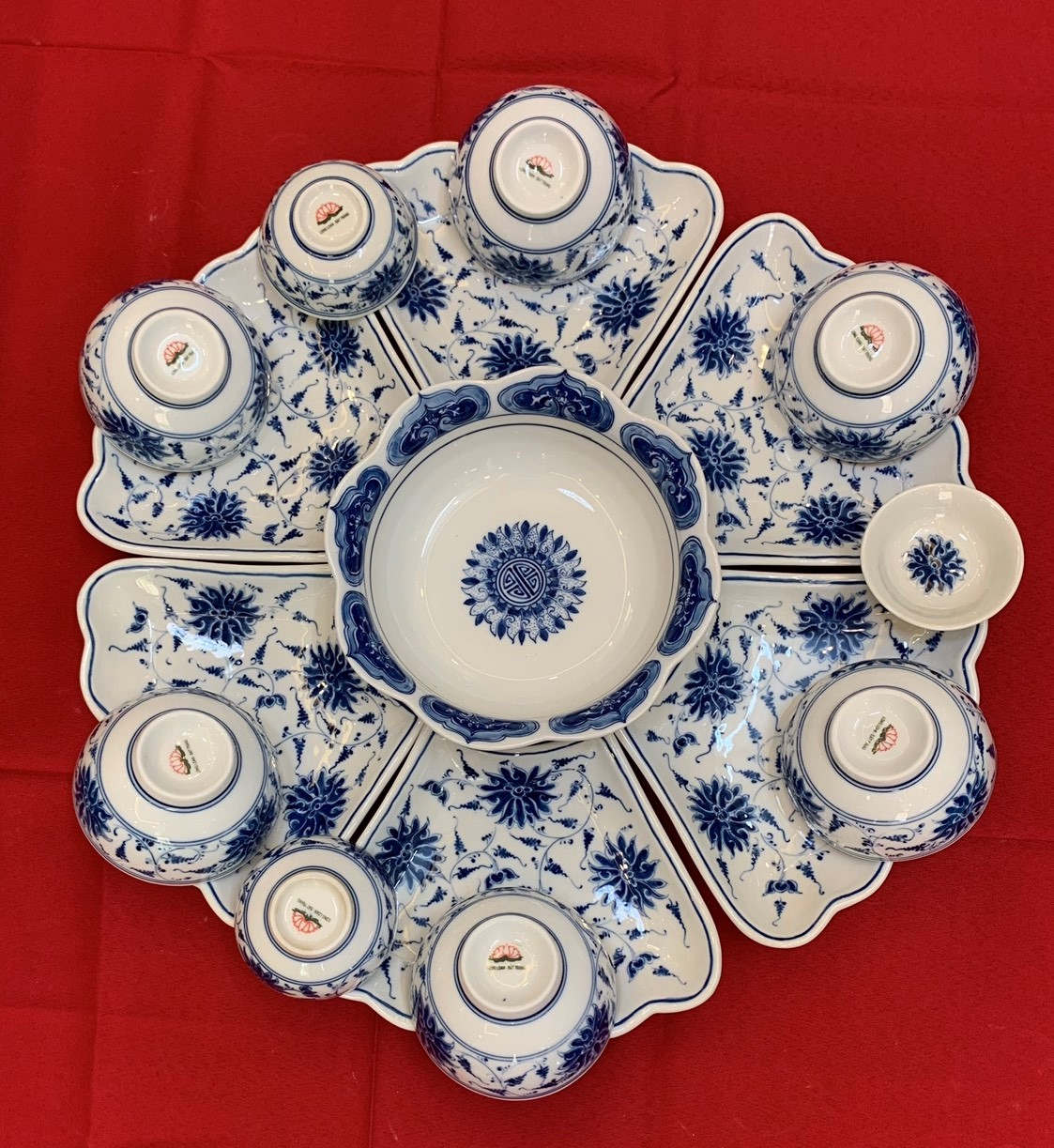 (ad5324) Bộ Bát Đĩa Hoa Sen Cổ