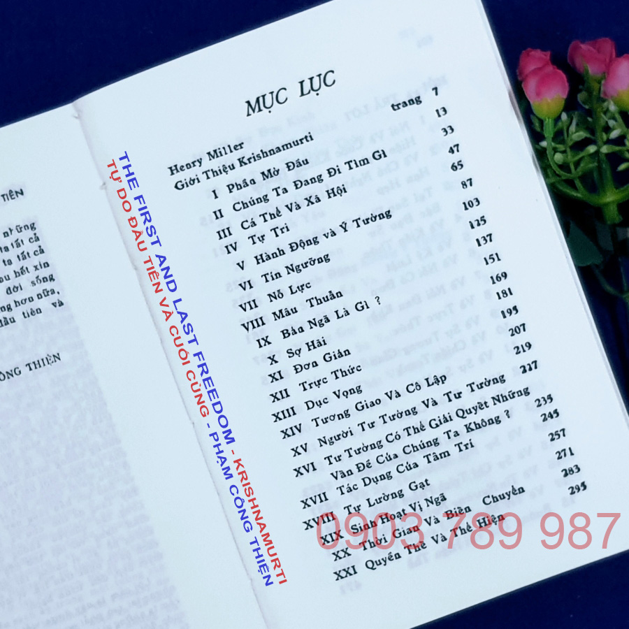 Trong cuốn sách này, Krishnamurti đập tan khái niệm thông thường về tự do. Với ông, tự do không phải là kết quả sau một quá trình tu tập, cũng không phải là việc thoát khỏi một cái gì đó (như thoát nợ hay thoát khổ).