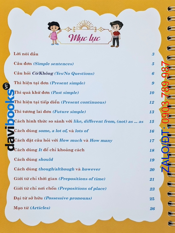 Sách tóm tắt các điểm ngữ pháp theo kiểu ghi chú ngắn gọn, giúp các em dễ dàng ghi nhớ công thức và cách dùng các thì; khái niệm, vị trí, và cách dùng trạng từ chỉ tần suất, giới từ chỉ nơi chốn, sở hữu cách, tính từ sở hữu, đại từ sở hữu, mạo từ, cách dùng some và any để chỉ số lượng: cách dùng must và mustn't, should và shouldn't, might và mightn't; cùng các điểm ngữ pháp khác trong chương trình tiếng Anh lớp 6.