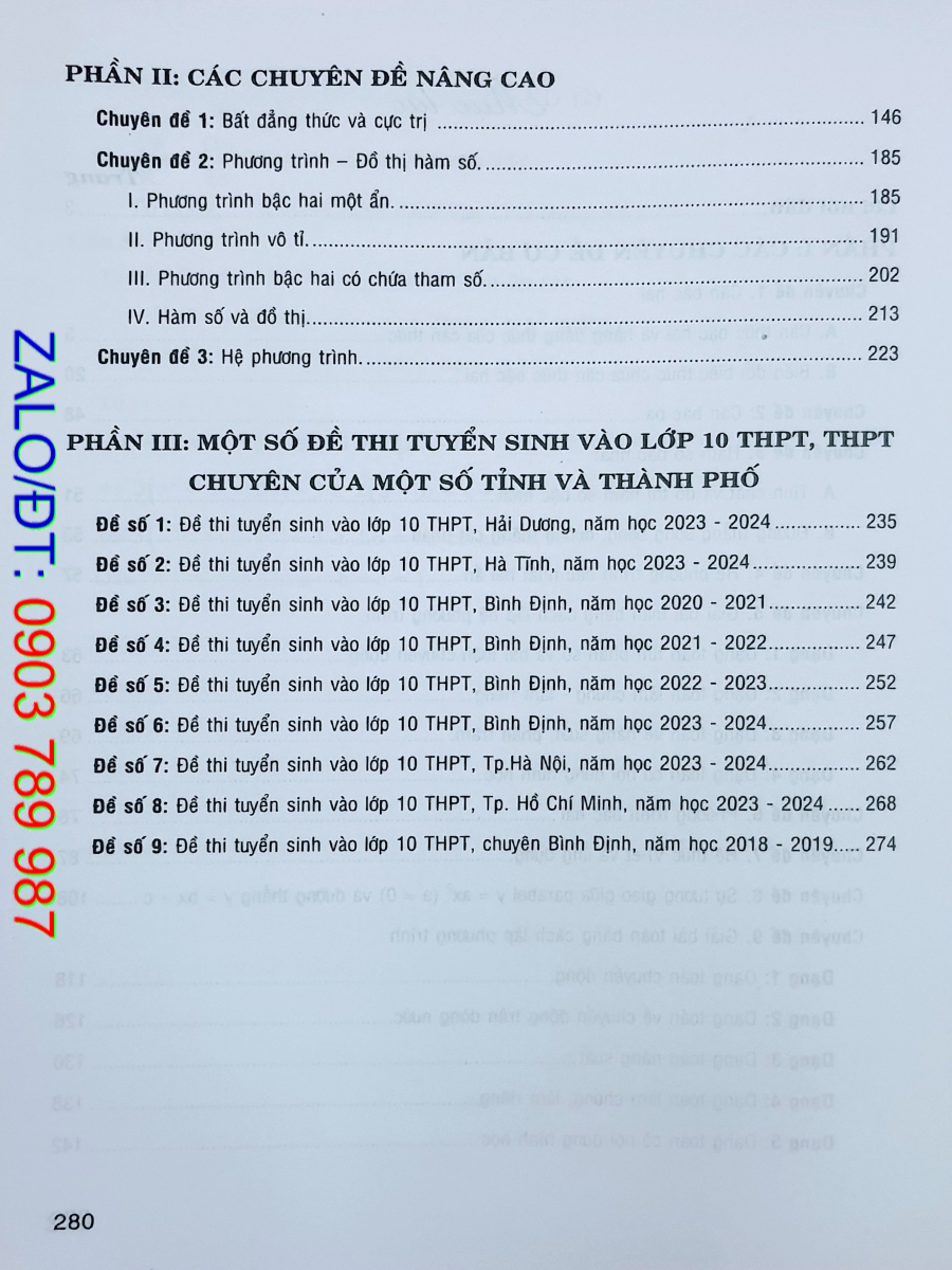 Phần V: Một số chuyên đề nâng cao: Gồm ba chuyên để nâng cao, giúp cho các em học sinh có thêm kiến thức chuyên sâu thi tuyển sinh vào 10 chuyên và bồi dưỡng học sinh giỏi.