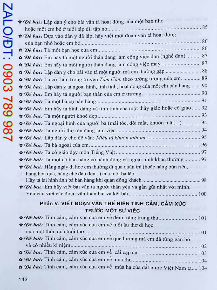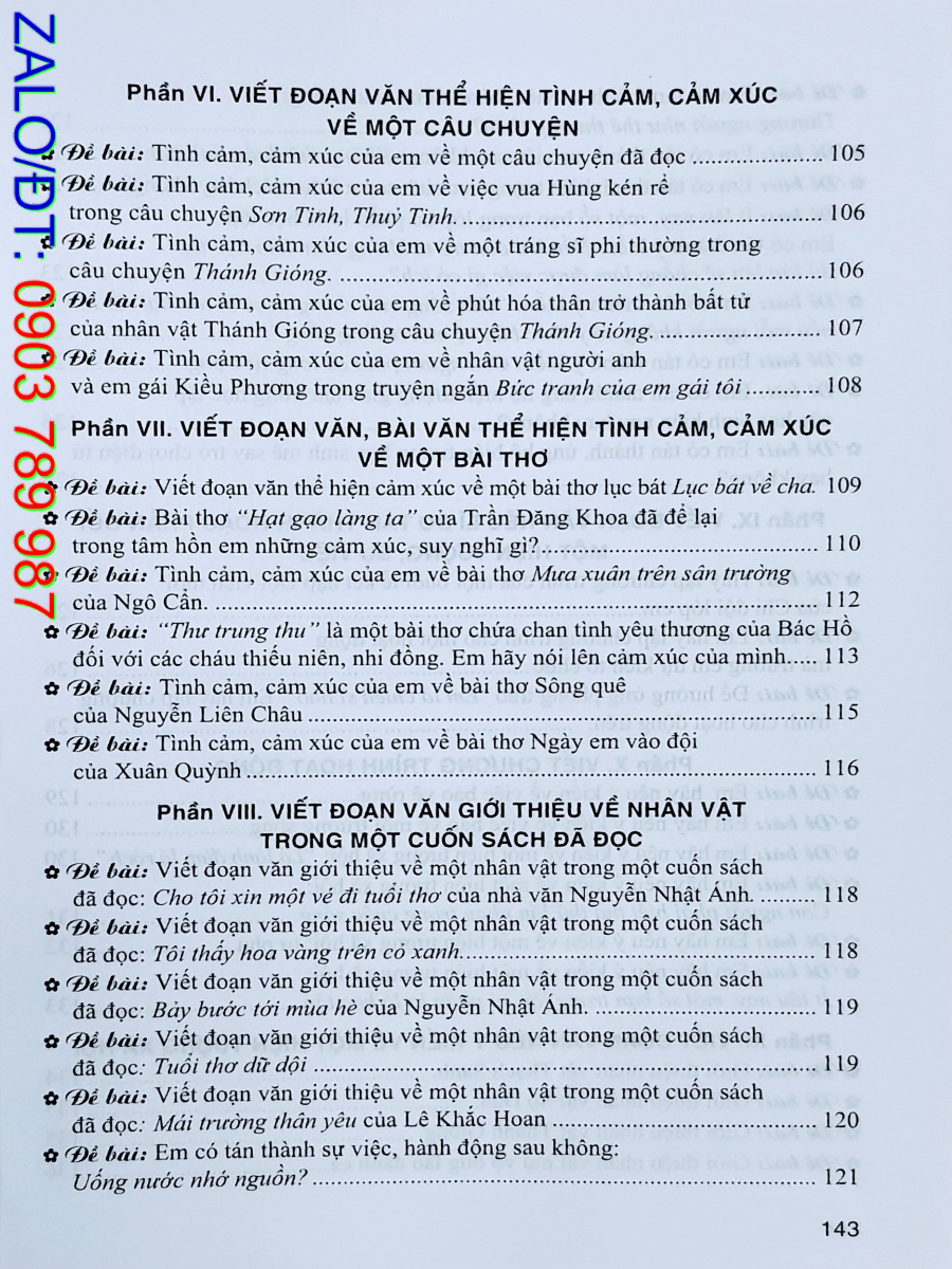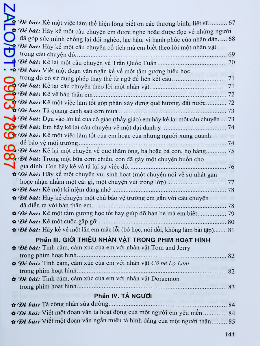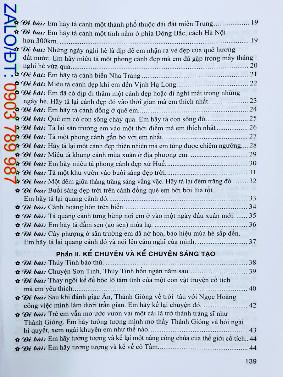 Cuốn sách Những bài làm văn mẫu 5 có 11 phần: