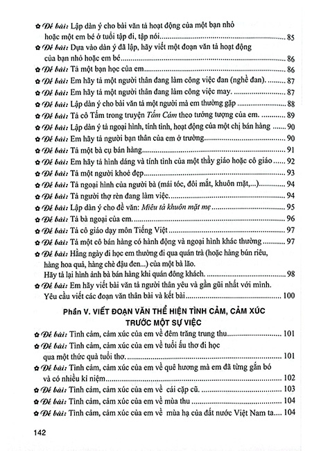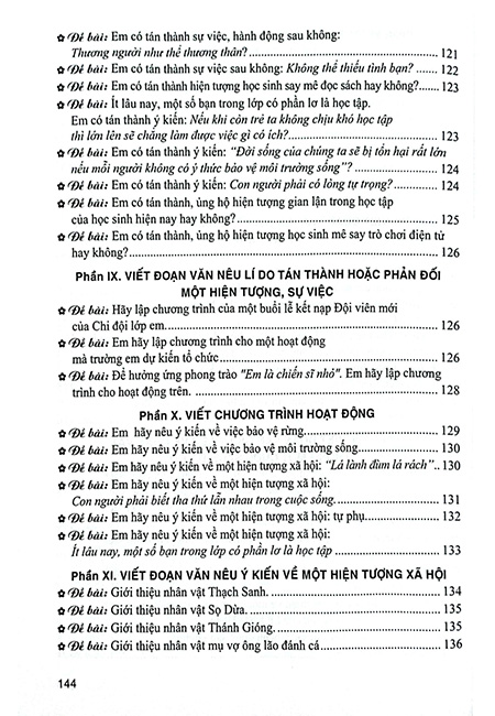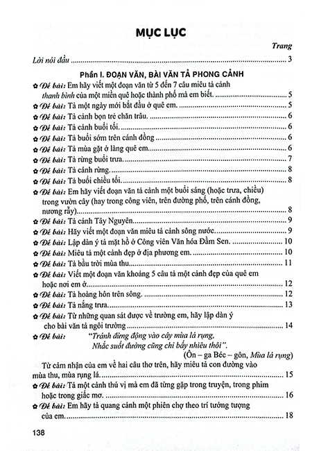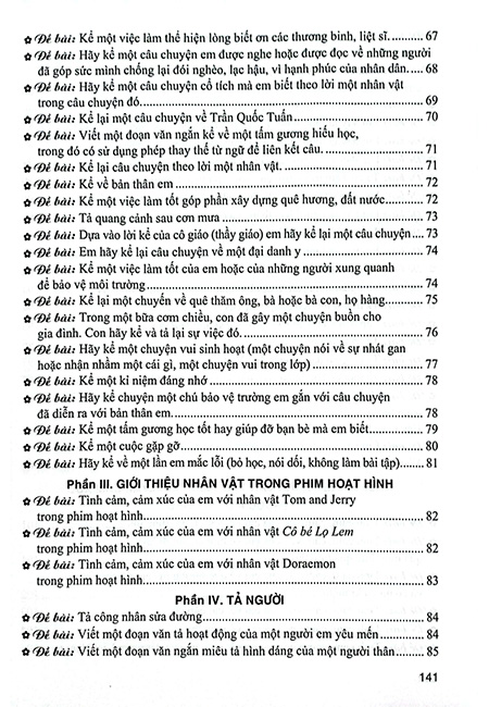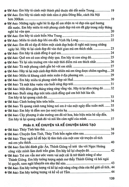Cuốn sách Những bài làm văn mẫu 5 có 11 phần: