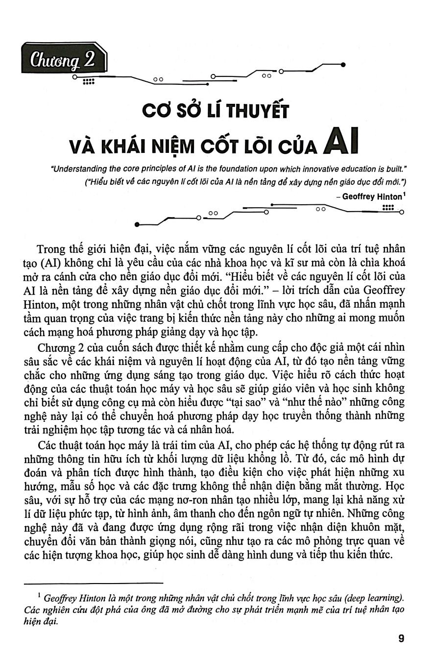 Trong kỉ nguyên số, khi công nghệ không ngừng phát triển, giáo dục cũng đang được tái định hình để phù hợp với những thách thức và cơ hội mới. “Giáo dục biến đổi cuộc sống, và AI mở ra tiềm năng vô hạn cho mỗi người học.” – lời trích dẫn đầy cảm hứng của Andrew Ng, một chuyên gia toàn cầu về AI và giáo dục, nhấn mạnh rằng con đường tri thức không chỉ là hành trình của sự truyền đạt kiến thức mà còn là quá trình khai phá, phát triển những khả năng tiềm ẩn của mỗi cá nhân. Cuốn sách này ra đời nhằm cung cấp cho các giáo viên và học sinh môn Khoa học Tự nhiên (KHTN) một hướng đi mới, nơi công nghệ AI không chỉ hỗ trợ mà còn đồng hành cùng con người trong quá trình dạy và học.