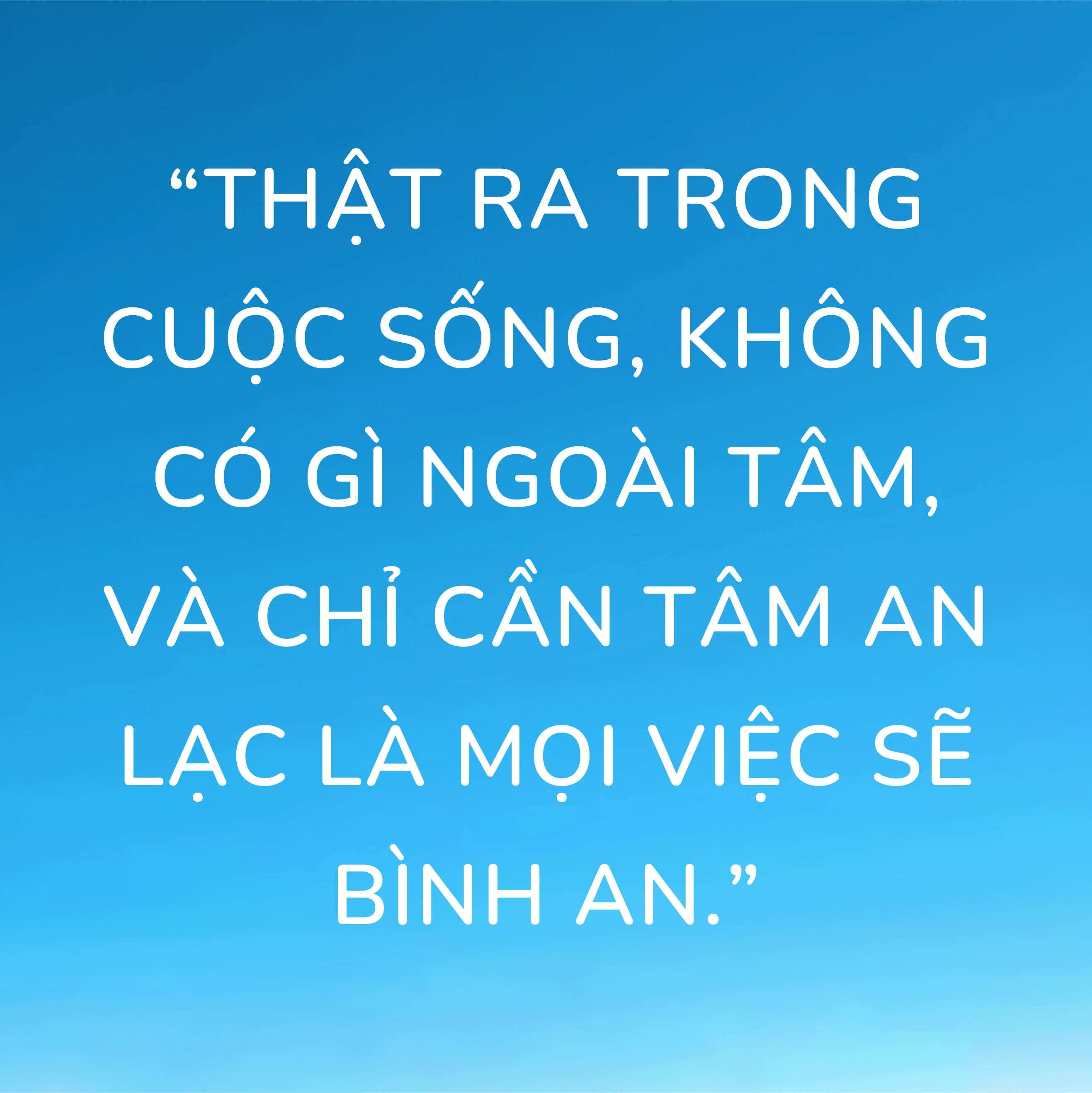 - Thật ra trong cuộc sống, không có gì ngoài tâm, và chỉ cần tâm an lạc là mọi việc sẽ bình an