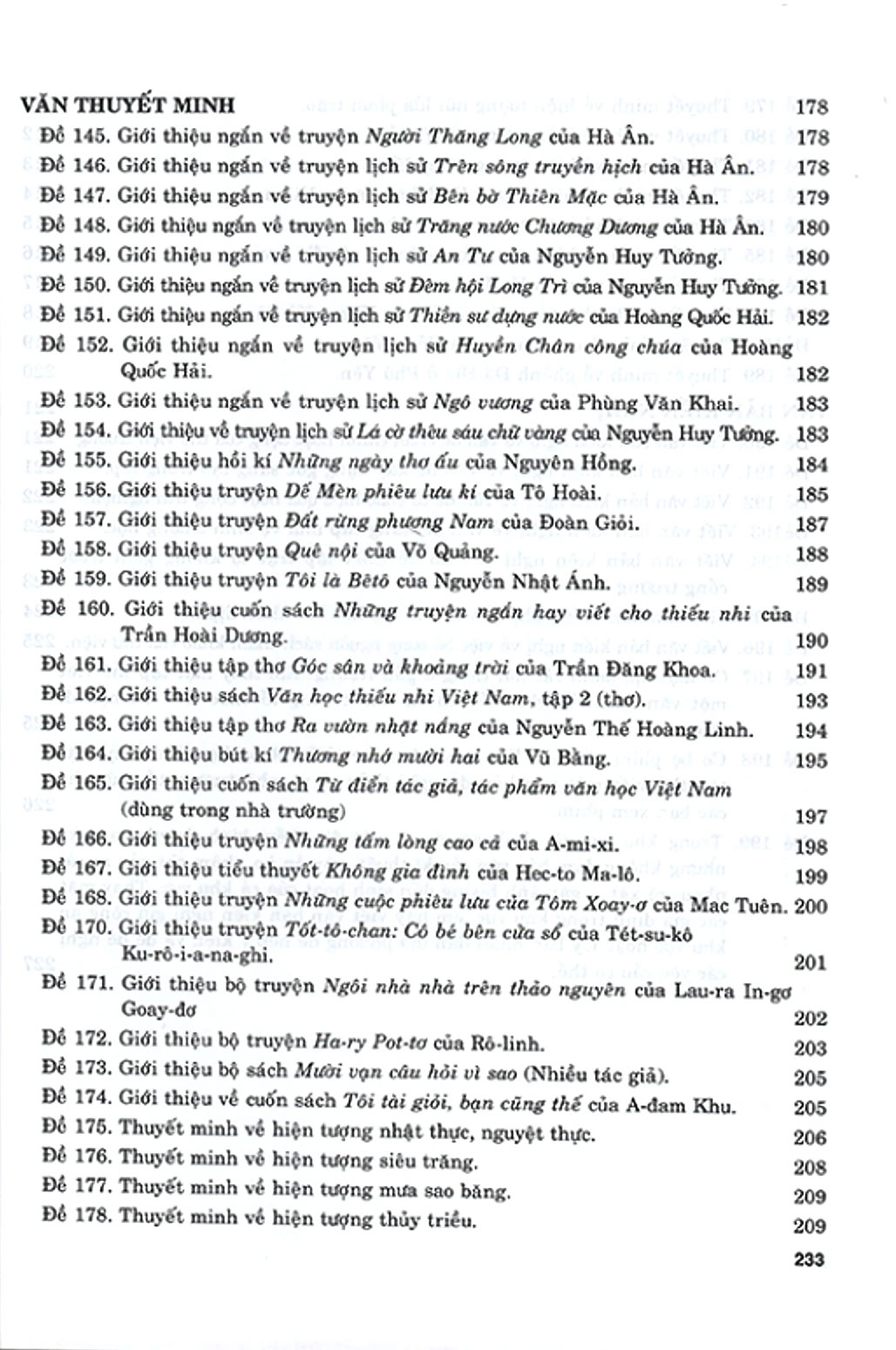 Nhằm gợi mở một cách viết cho học sinh khi học và thi môn Ngữ văn, chúng tôi biên soạn bộ sách 199 bài và đoạn văn hay. Bộ sách được biên soạn theo Chương trình giáo dục phổ thông 2018, môn Tiếng Việt (đối với cấp Tiểu học), chương trình Ngữ văn (đối với cấp Trung học cơ sở và Trung học phổ thông), 199 đề bài trong sách bao gồm các mức độ từ dễ đến khó để phù hợp với yêu cầu của người học từ cơ bản đến nâng cao.