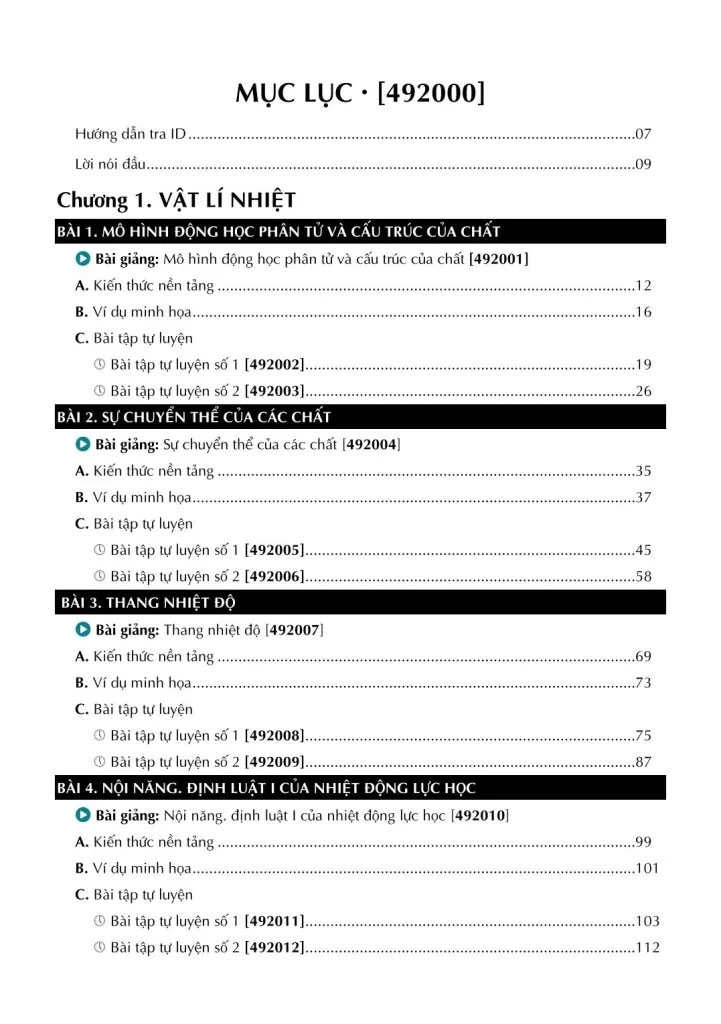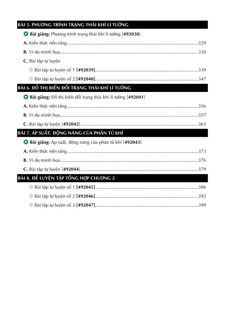 * Chương 2: KHÍ LÍ TƯỞNG (gồm 8 bài học).