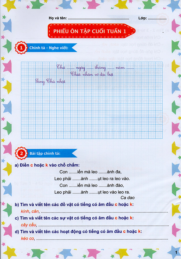 Phiếu Ôn Tập Cuối Tuần Môn Tiếng Việt Lớp 3 (Chân Trời)
