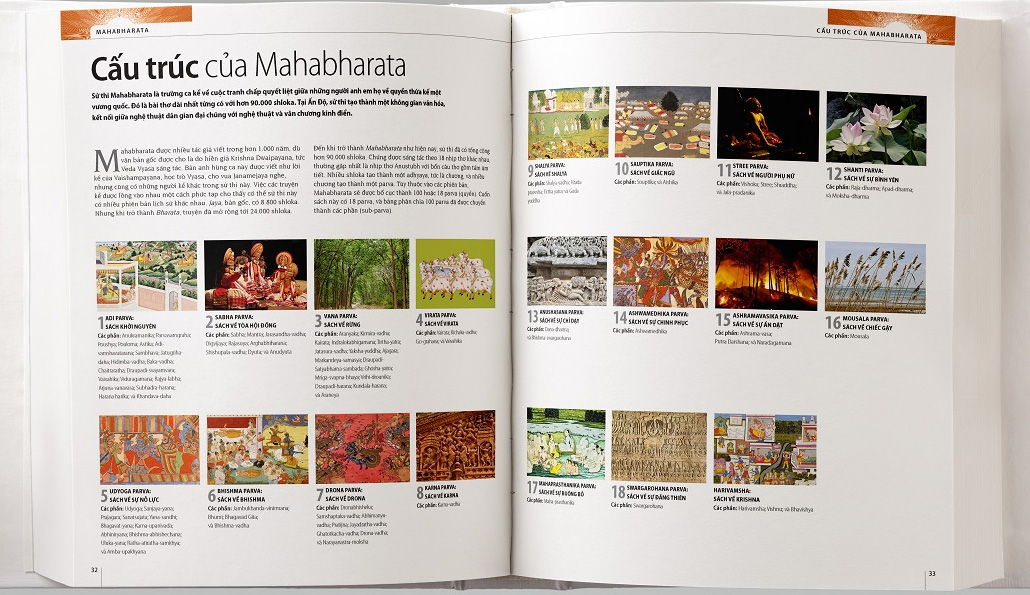 Với "Mahabharata bằng hình - Thiên sử thi vĩ đại nhất của Ấn Độ", DK đem đến cho người đọc một chỉ dẫn tối ưu để đọc hiểu Mahabharata, bằng cách cung cấp các kiến thức căn bản về địa lý, niên biểu lịch sử, chuẩn mực xã hội, nghi lễ, các tín ngưỡng và việc thực hành tín ngưỡng, giới thiệu vị trí của Mahabharata trong hệ thống kinh điển Ấn Độ giáo. Và trên hết là những trang truyện với minh hoạ lộng lẫy. Toàn bộ 18 parva (quyển) của Mahabharata được kể lại với minh hoạ cực kỳ đẹp từ các bản thảo chép tay, cả tranh vẽ lẫn in khắc, đôi khi từ những địa danh không ngờ tới ở bên ngoài Ấn Độ.