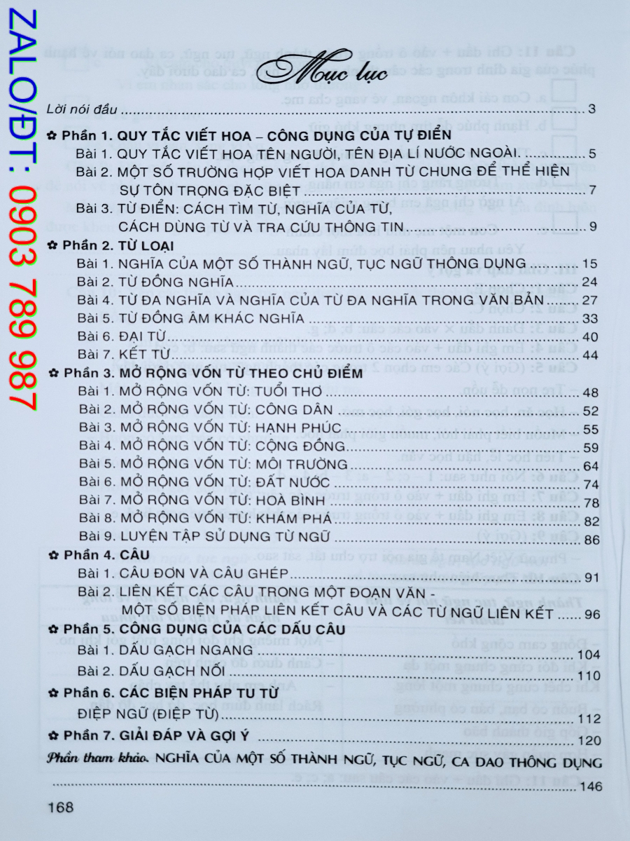 Các phần của sách gồm: