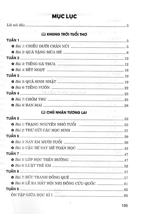 Bộ sách gồm đầy đủ các tuần, bài, chủ điểm với 5 nội dung: