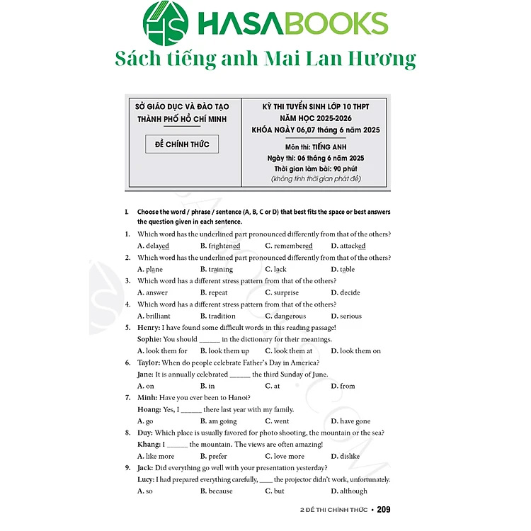 35 Đề tiếng Anh ôn thi vào lớp 10 bám sát chương trình Tiếng Anh bậc THCS. Các đề thi được xây dựng theo chương trình GDPT 2018 của Bộ Giáo dục và Đào tạo, gồm: